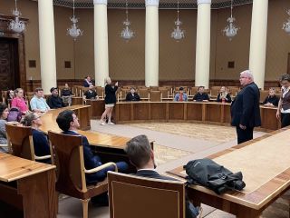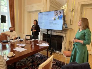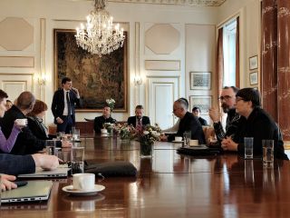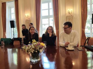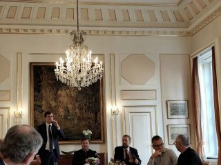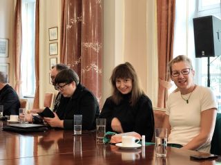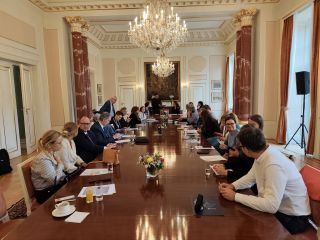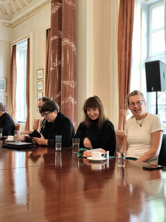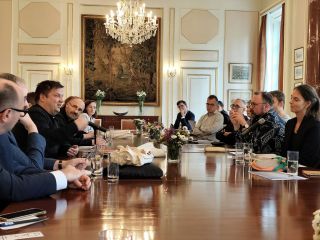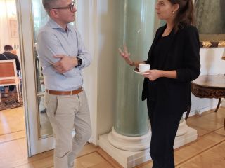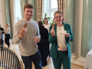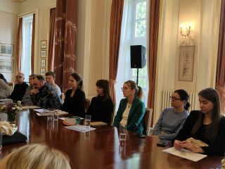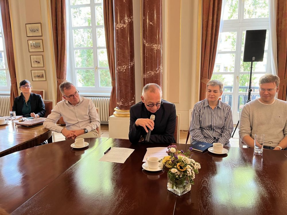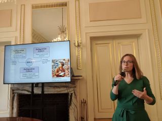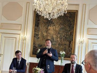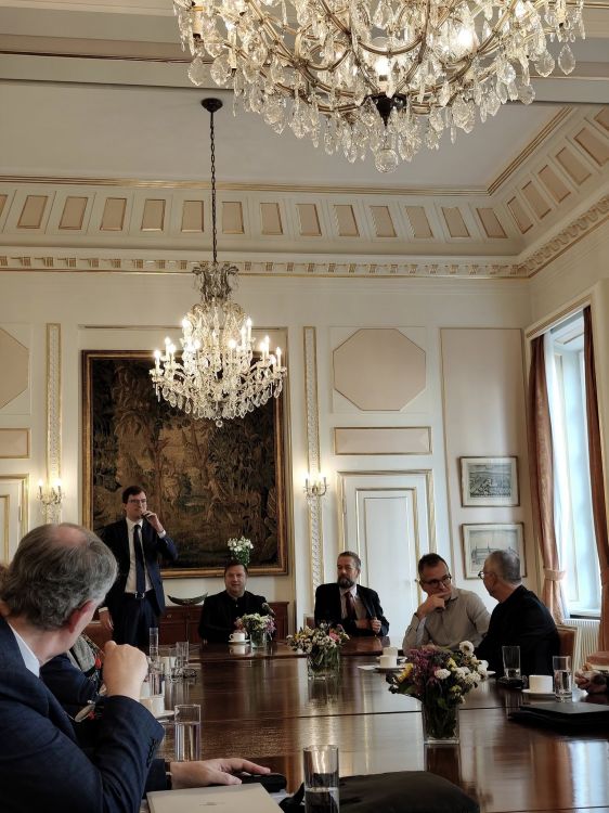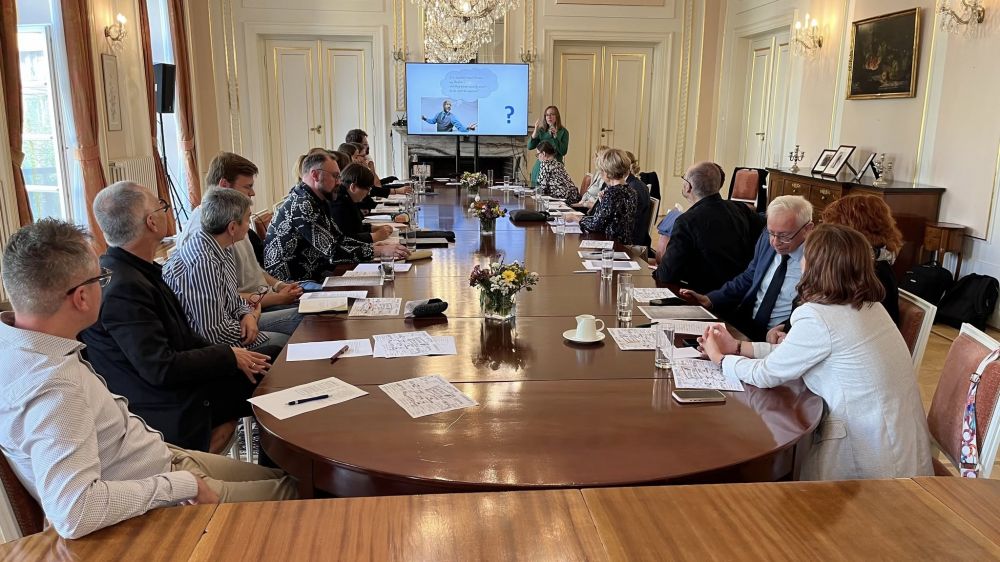 Przed kończącym Dzień Niderlandysty uroczystym lunchem miała miejsce ożywiona dyskusja z przedstawicielami Niderlandzkiej Unii Językowej, dotycząca obecnej sytuacji polskiej niderlandystyki oraz wyzwań, z którymi mierzą się polscy niderlandyści.